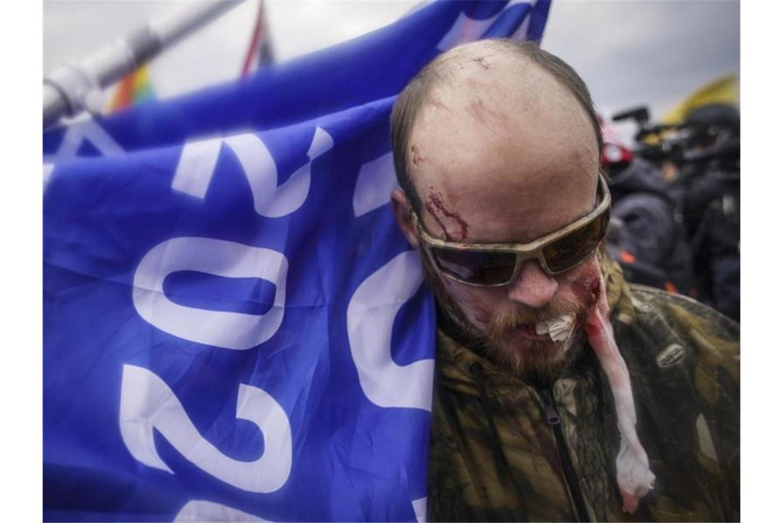 Ein verletzter Demonstrant am Rande der Proteste vor dem Kapitol. Foto: John Minchillo/AP/dpa