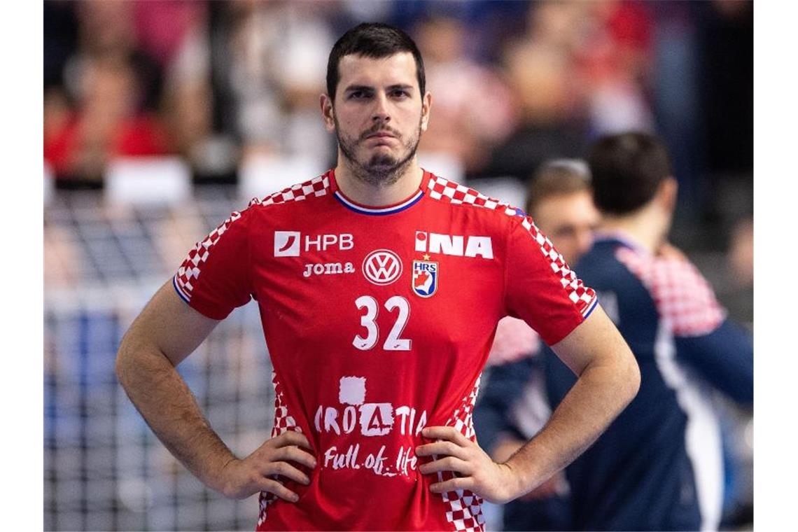 Der kroatische Handballer Ivan Sliskovic reagiert während des Spiels. Foto: Marius Becker/dpa/Archivbild