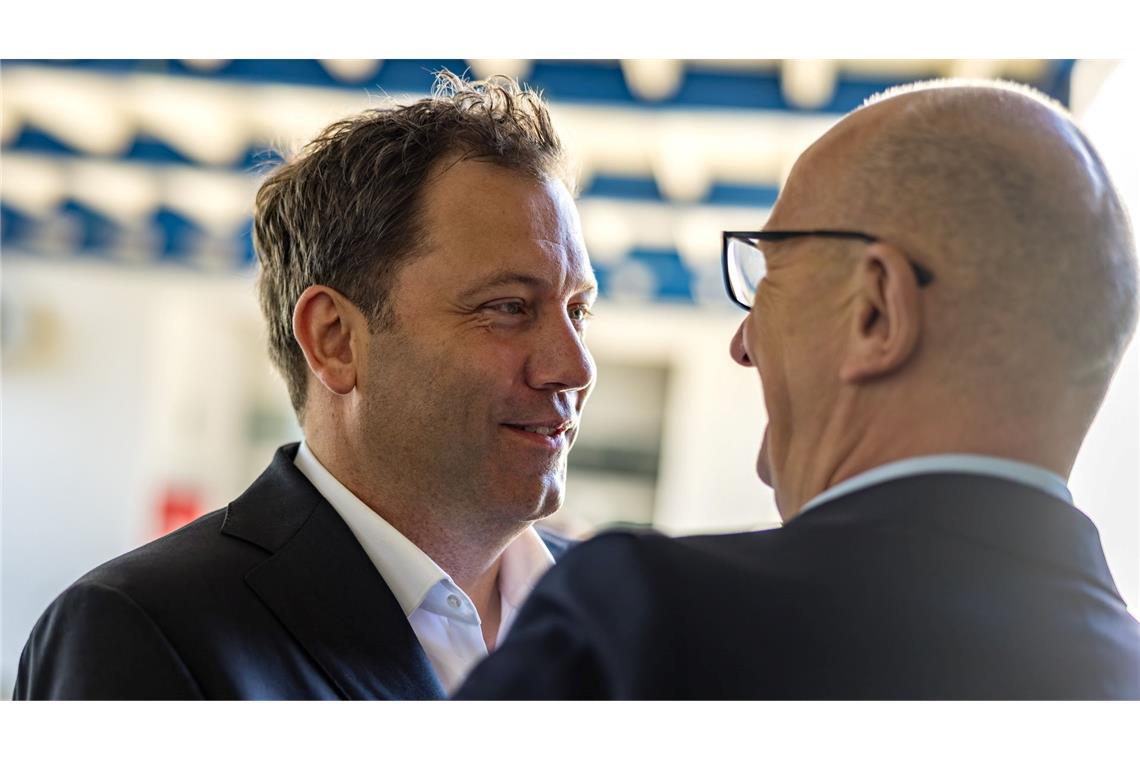 SPD-Chef Lars Klingbeil dringt auf die Prüfung eines AfD-Verbotsverfahrens. Hier im Gespräch mit Dietmar Woidke (r), Brandenburgs Ministerpräsident und SPD-Landesvorsitzender.