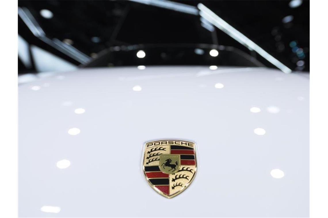 Ein Porsche-Logo ist auf einer Motorhaube zu sehen. Foto: Silas Stein/dpa/Symbolbild