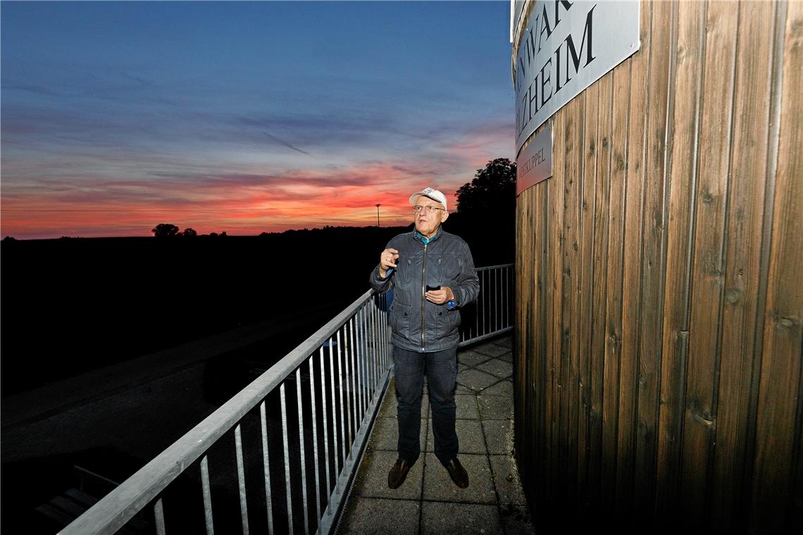 Hans-Ulrich Keller vor der Welzheimer Sternwarte. Sie verfügt über das größte und leistungsfähigste Teleskop in Baden-Württemberg. Fotos: J. Fiedler