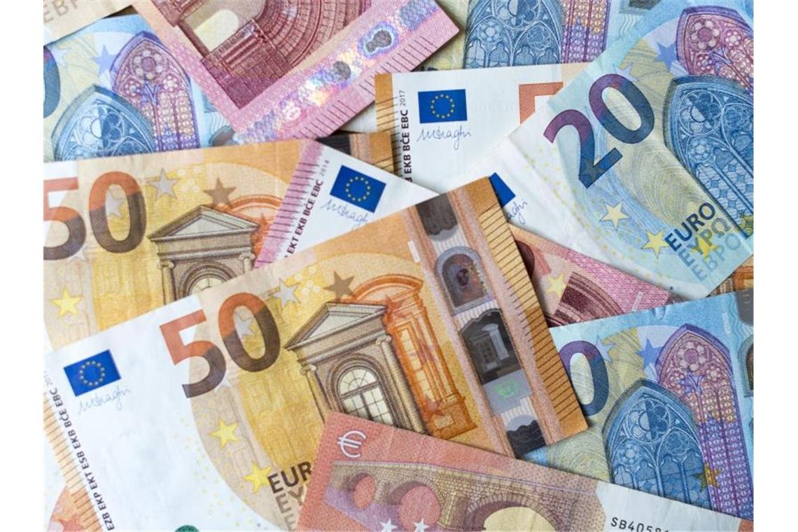 Zahlreiche Banknoten zu 10, 20 und 50 Euro liegen auf einem Tisch. Foto: Monika Skolimowska/dpa-Zentralbild/dpa/Illustration