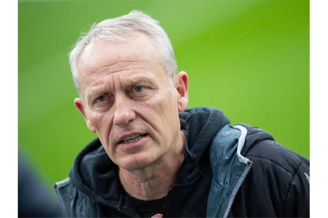 Freiburgs Trainer Christian Streich steht vor dem Spiel im Stadion. Foto: Tom Weller/dpa/Archivbild