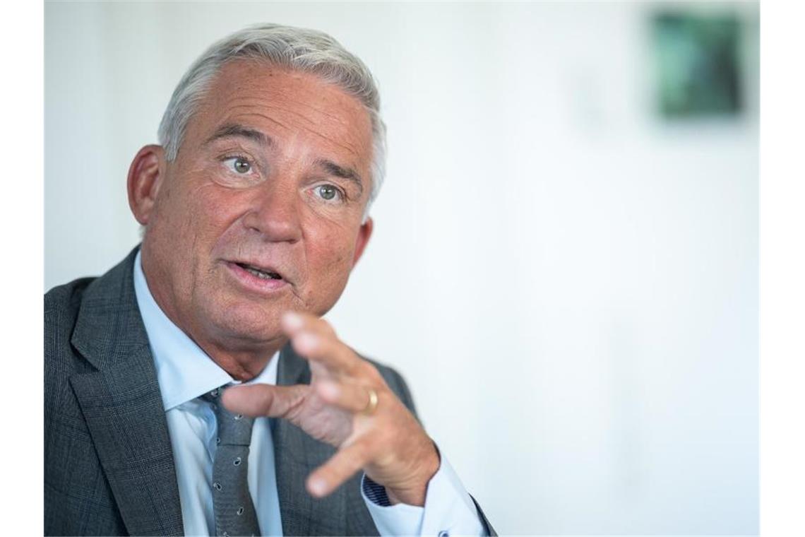 Thomas Strobl (CDU), Minister für Inneres, Digitalisierung und Migration von Baden-Württemberg, spricht während eines Interviews. Foto: Sebastian Gollnow/dpa/Archiv