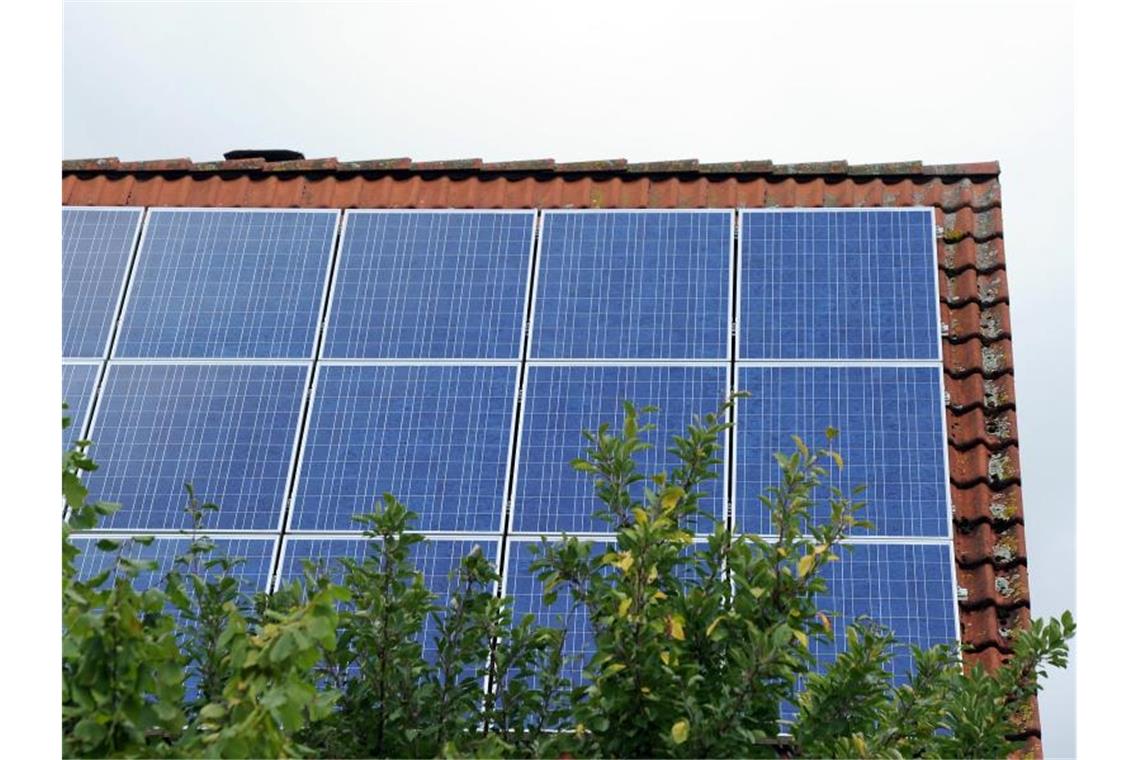 Ein Dach ist mit Photovoltaik-Modulen bestückt. Foto: Caroline Seidel/dpa/Archivbild