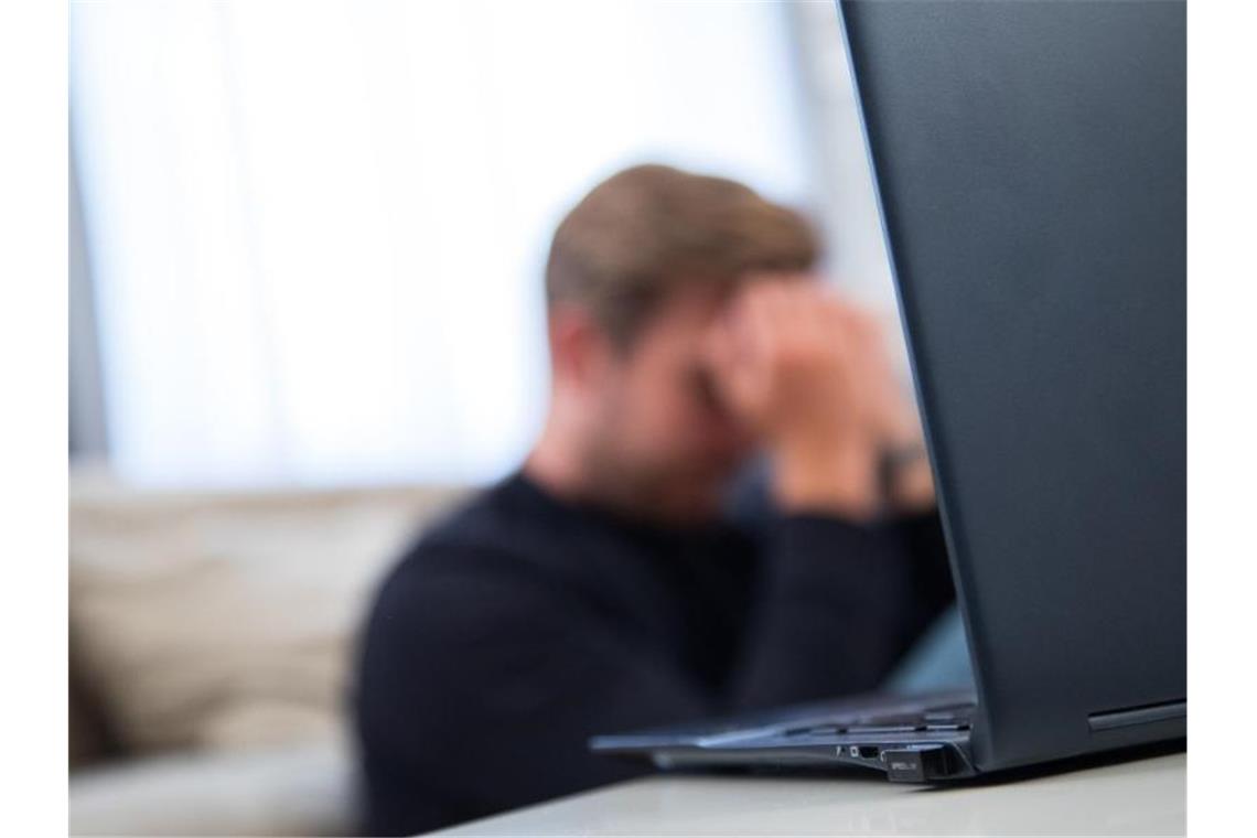 Ein Mann sitzt vor einem Laptop und fasst sich an den Kopf. Foto: Christin Klose/dpa-tmn/dpa