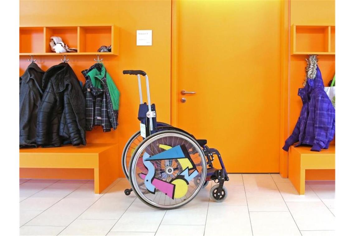 Ein Rollstuhl steht vor einem Klassenzimmer. Foto: Jan Woitas/dpa-Zentralbild/dpa/Symbolbild