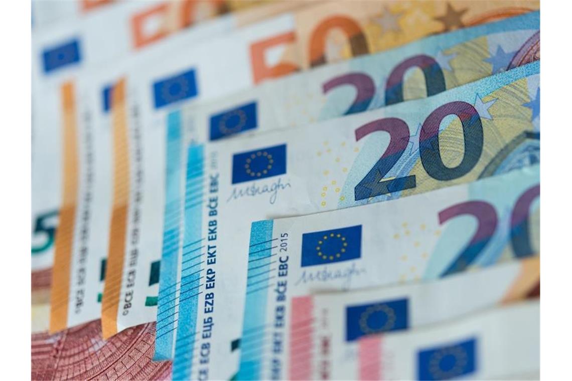 Verschiedene Geldscheine liegen sortiert auf einem Haufen. Foto: Monika Skolimowska/zb/dpa/Archivbild