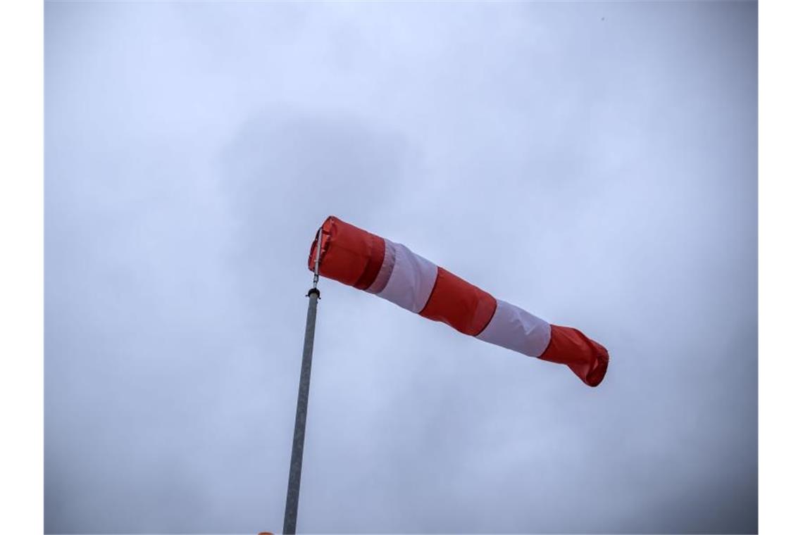 Ein Windsack flattert im Wind. Foto: Jens Büttner/dpa-Zentralbild/dpa/Archivbild
