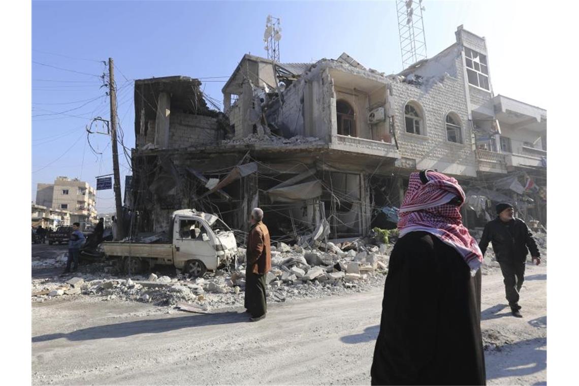 Das Foto vom 21. Dezember zeigt ein bei einem Luftangriff zerstörtes Haus im Ort Sarakeb. Foto: Ghaith Al-Sayed/AP/dpa