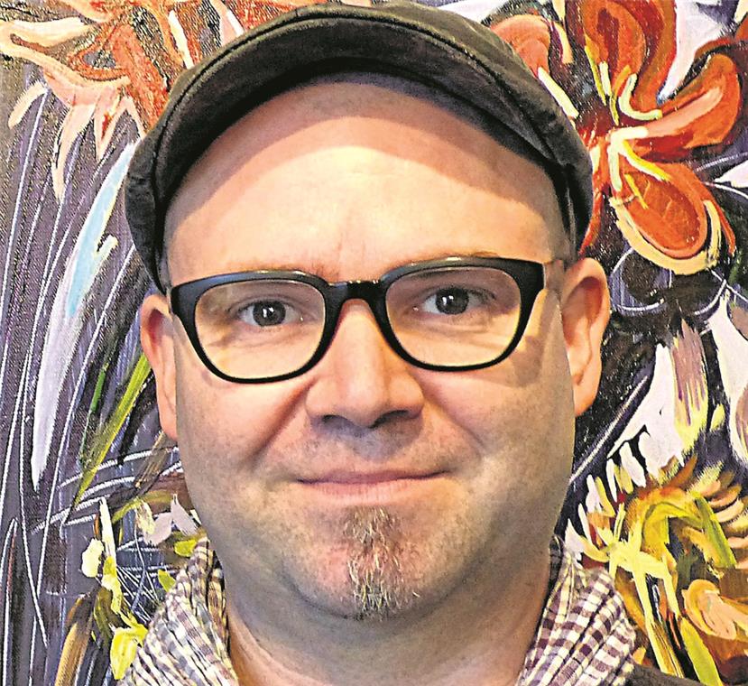 Blumenbilder sind bei Neumann keine lieblichen Stillleben. Ein Kopf, der stark an Donald Trump erinnert, wächst aus einer Blüte. In der Blumen-Pracht erscheint ein seziertes Gehirn oder ein Adler nistet im farbenfrohen Strauß. Aus einem aufgeschnittenen Kopf ragen die blühenden Pflanzen. Das Schöne paart der Maler mit Gegensätzen und Brüchen. So wird ein anderer Blumenstrauß von einer Hand gehalten, die die Stängel aggressiv zu zerquetschen scheint. Neben Arbeiten in Acryl, Ölkreide und Sprayfarbe sind Tuschezeichnungen von dynamischen Boxszenen dabei. Ein Raum ist Bleistiftzeichnungen mit Aquarell gewidmet. Es handelt sich um Illustrationen, die Neumann für ein Buch des türkischen Schriftstellers Aras Ören gemacht hat. Szenen aus dem Buch hat er weitergesponnen und künstlerisch umgesetzt. Der Maler liebt die Abwechslung in der Größe der Formate, den Themen und verschiedenen Techniken. Auch drei digitale Radierungen als Pigmentdruck auf Bütten sind in der Ausstellung zu sehen.