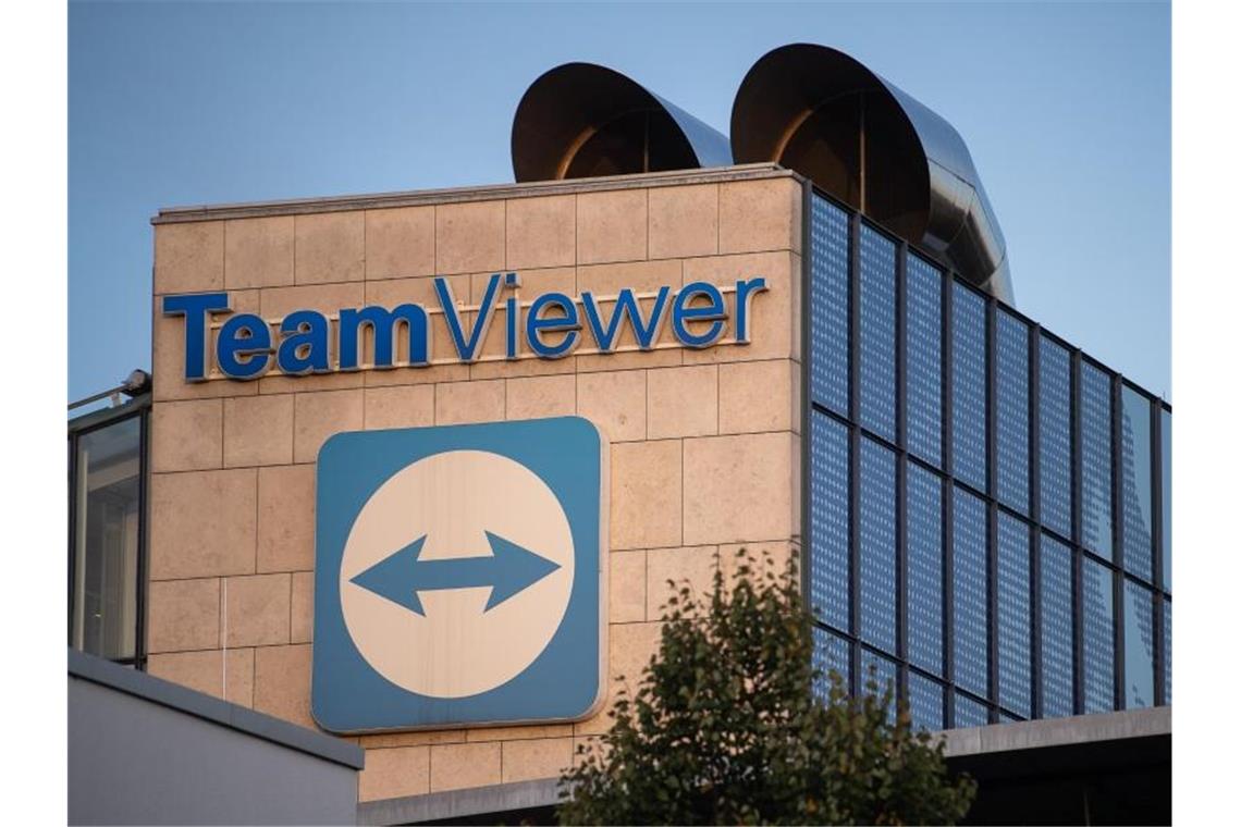 Das Logo des Software-Herstellers Teamviewer am Hauptsitz des Unternehmens in Göppingen. Foto: Sebastian Gollnow