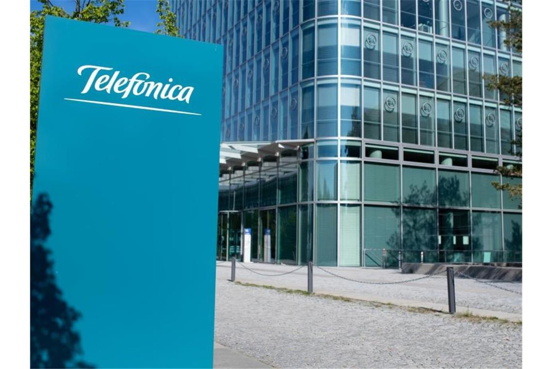 Das Logo des Telekommunikationsanbieters Telefonica ist auf einem Schild vor der Deutschlandzentrale am Uptown-Hochhaus in München zu sehen. Foto: Sven Hoppe/dpa