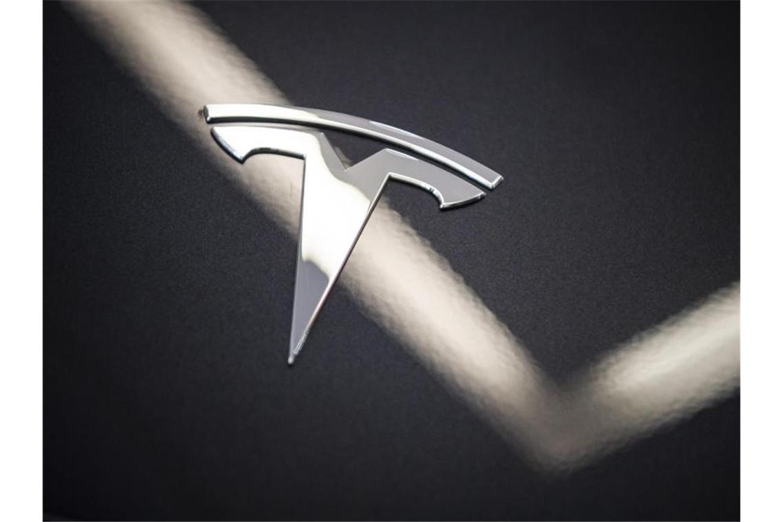 Das Logo des Autoherstellers Tesla. Foto: Christophe Gateau/dpa