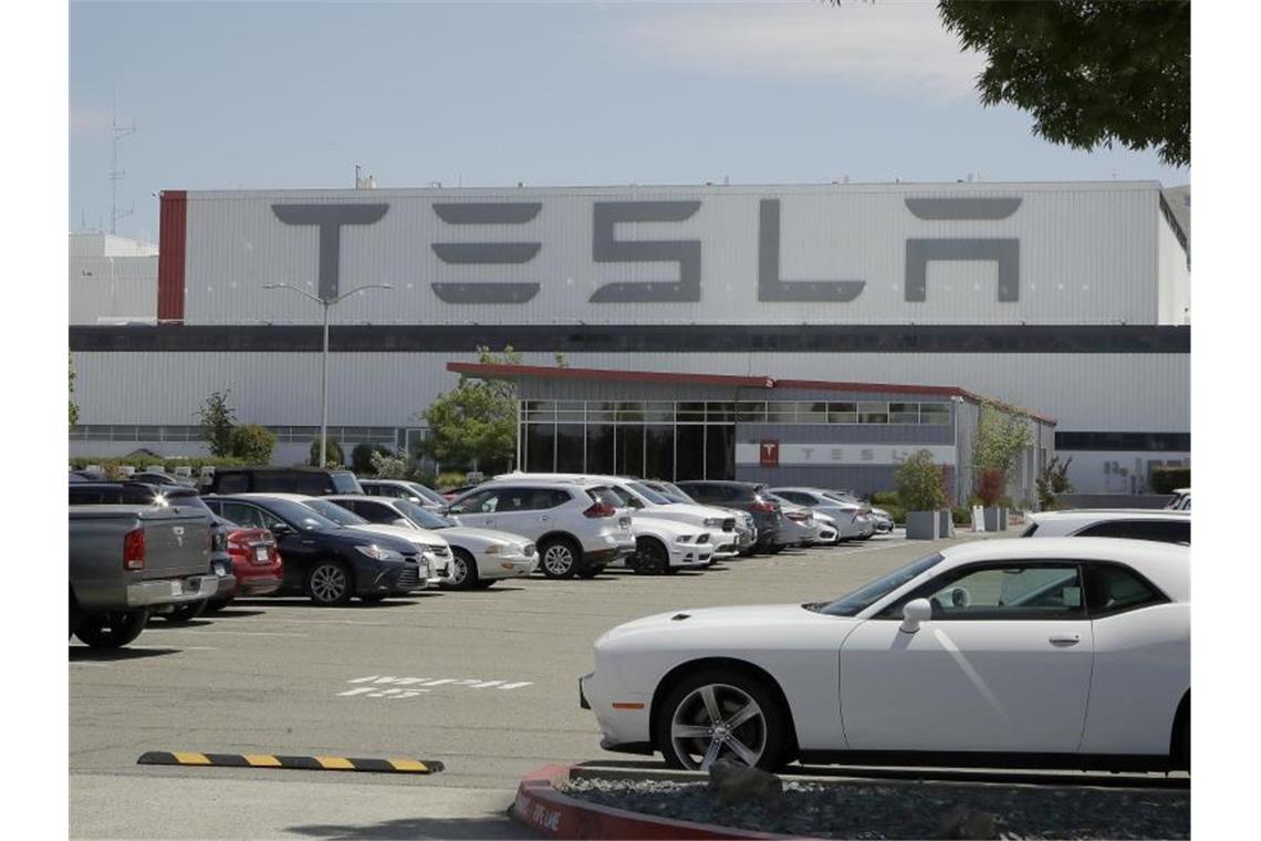 Fahrzeuge auf dem Parkplatz des Autowerks von Tesla im kalifornischen Fremont. Foto: Ben Margot/AP/dpa