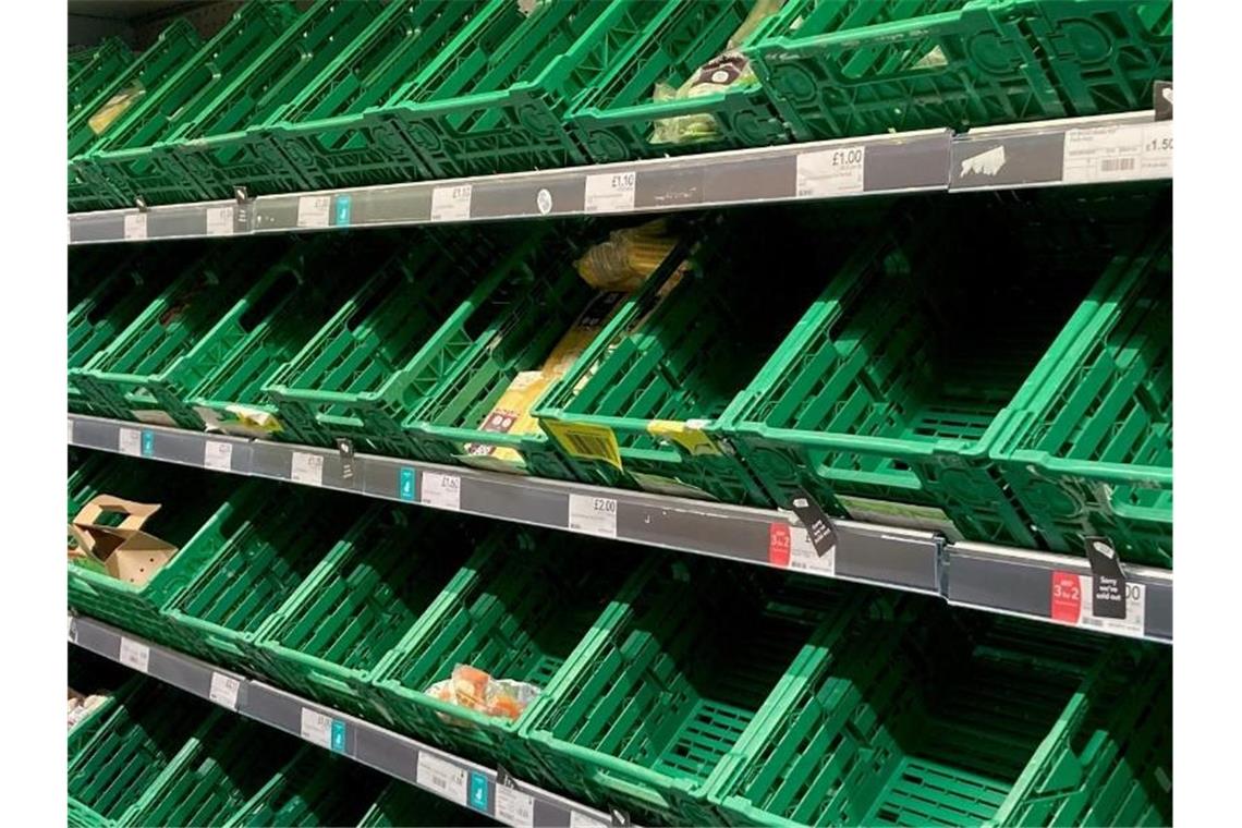 Leere Regale in einem Co-op-Supermarkt in Battersea, Südlondon. Foto: Kirsty O'connor/PA Wire/dpa