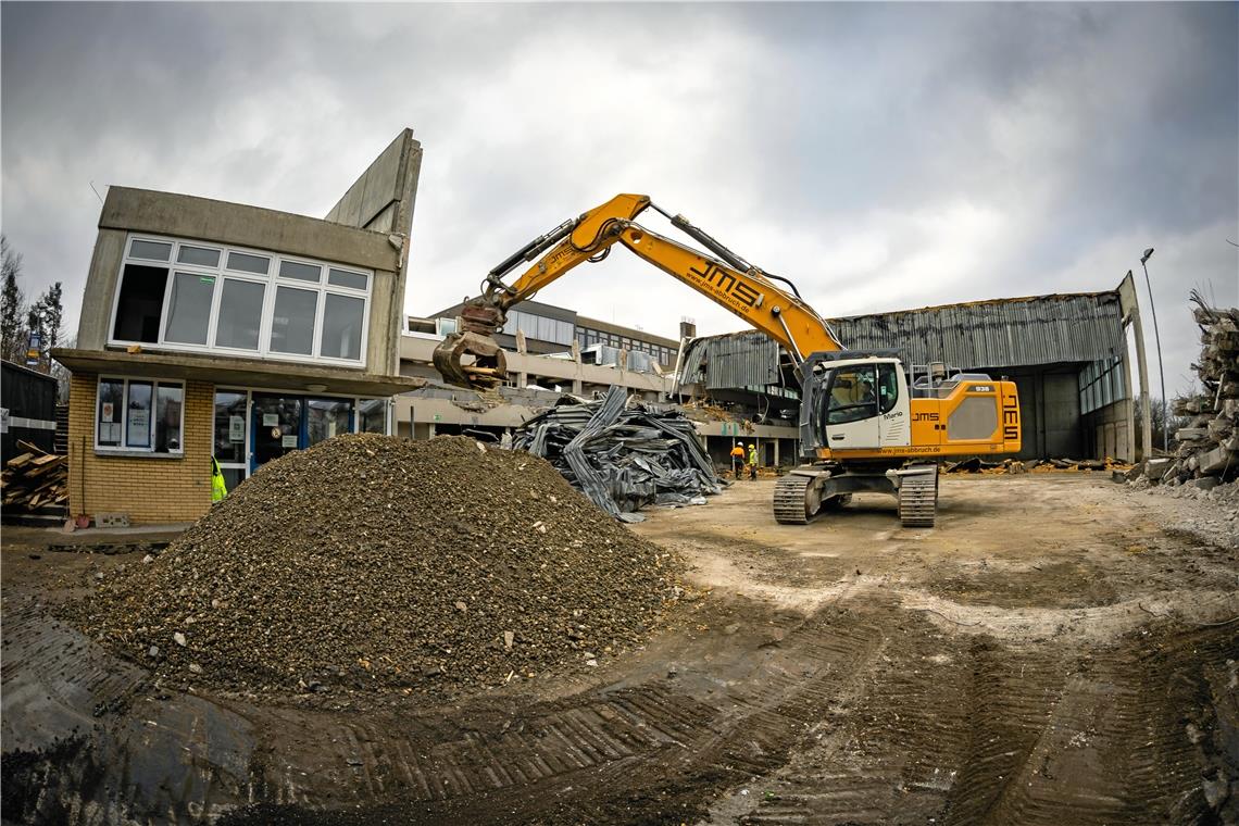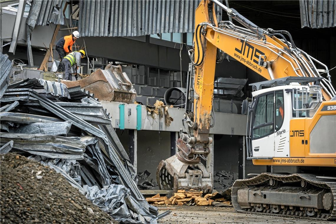 Auf der Maubacher Höhe in Backnang hat Mitte Januar der Abbruch der mehr als 50 Jahre alten Karl-Euerle-Halle begonnen. Sie soll bis Ende 2024 durch eine neue vierteilige Sporthalle ersetzt werden.