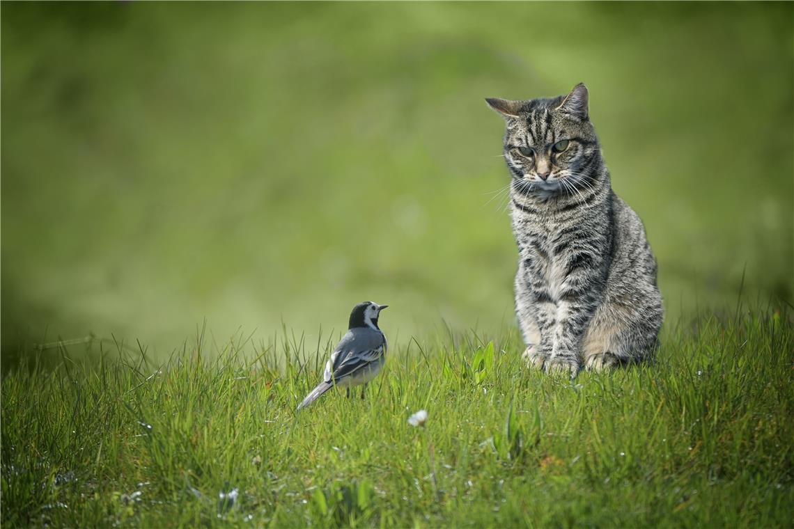 Wildvogel und Hauskatze im eigenen Garten – oftmals keine friedliche Koexistenz. Symbolbild: Adobe Stock/Maren Winter