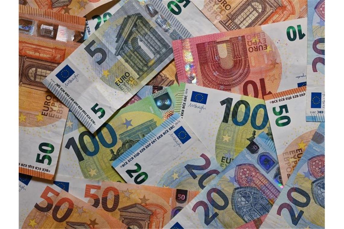 Eurobanknoten liegen auf einem Tisch. Foto: Patrick Pleul/dpa-Zentralbild/dpa/Illustration