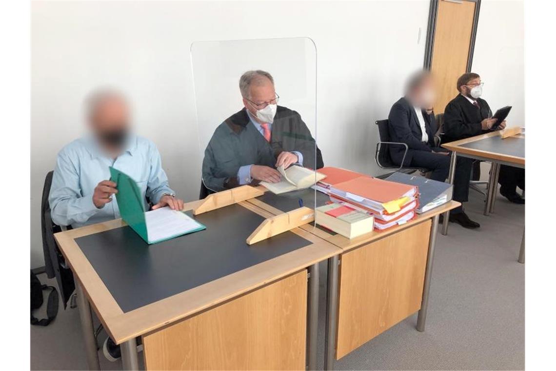 Die Angeklagten (1.v.l. sowie 3.v.l.) mit ihren Verteidigern vor dem Start der Verhandlung in Starnberg. Foto: Christof Rührmair/dpa