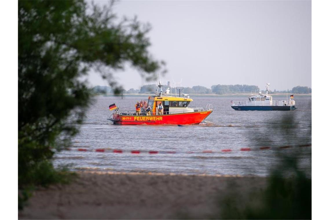 In der Elbe bei Kollmar (Kreis Steinburg) suchen Einsatzkräfte nach einem siebenjährigen Mädchen, das dort baden gegangen war. Foto: Jonas Walzberg/dpa