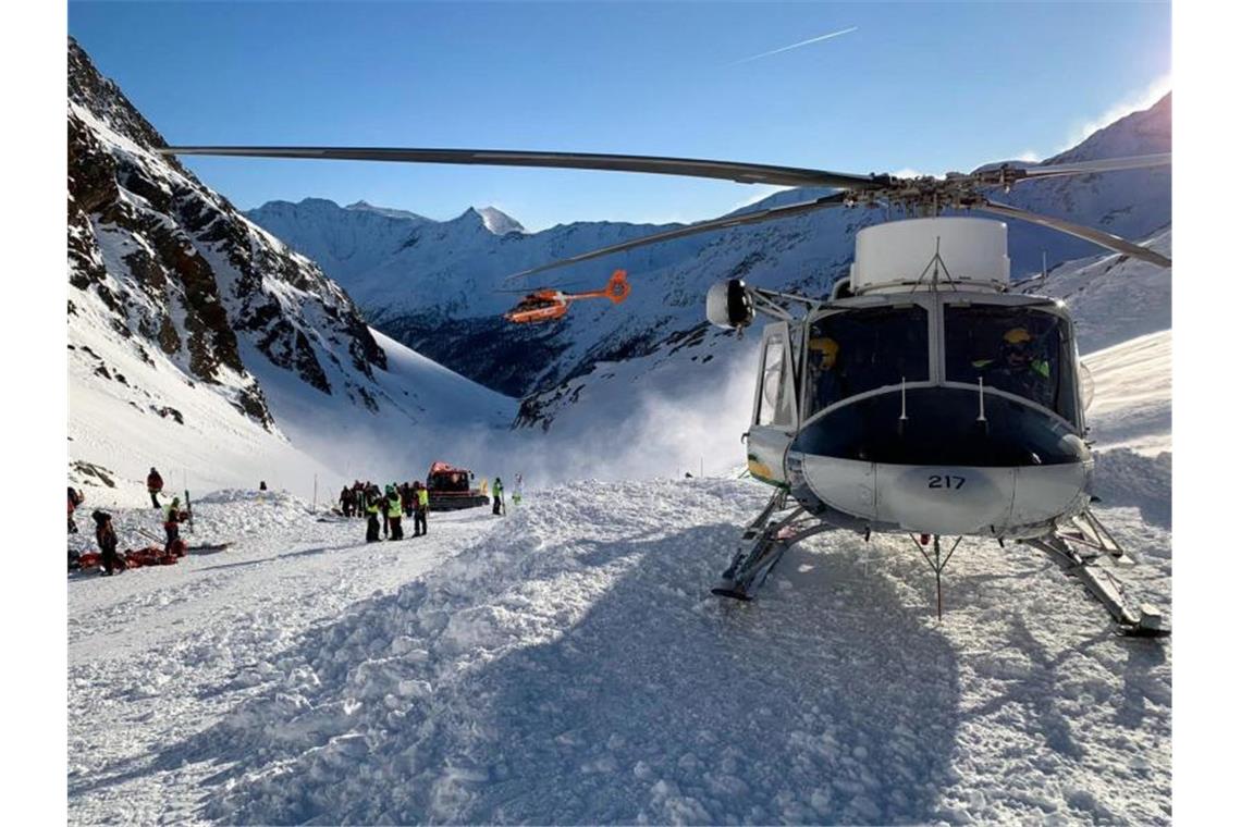 Ein Helikopter ist während einer Suchaktion von Rettungskräften nach einer Lawine auf einer Skipiste gelandet. Foto: Uncredited/ANSA/AP/dpa