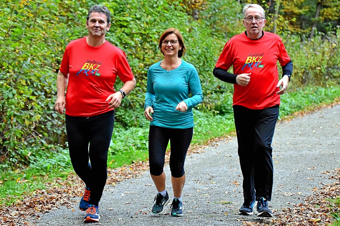 Horst Stocklossa, Andrea Seybold und Herbert Luithardt (von links) sind mit Laufend BKZ auf dem Weg zum Silvesterlauf. Foto: Tobias Sellmaier