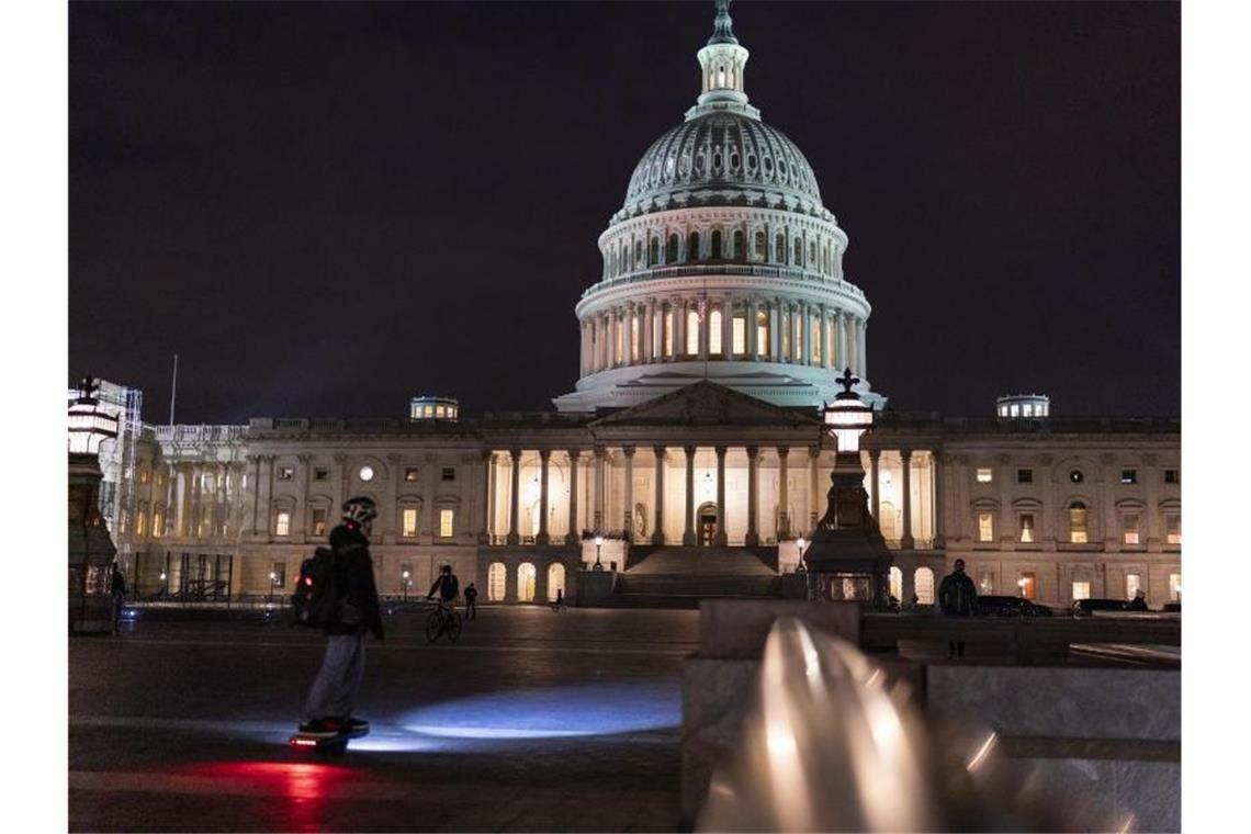 Das Kapitol ist im Rahmen des Amtsenthebungsverfahren gegen US-Präsident Trump hell erleuchtet. Foto: J. Scott Applewhite/AP/dpa