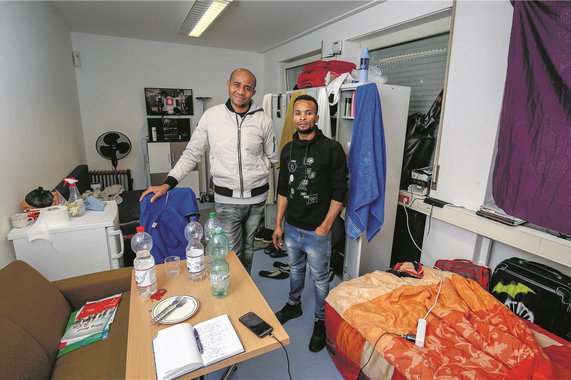 Prince Ejike (links) und Joseph Hope teilen sich seit vier Jahren ein Zimmer. Obwohl sie sich gut verstehen, hoffen die beiden Nigerianer, dass sie möglichst bald eine eigene Wohnung finden. Fotos: A. Becher