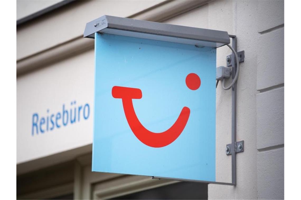 Das Logo des Reiseunternehmens TUI hängt neben einem geschlossenen Reisebüro in Potsdam. Foto: Soeren Stache/dpa-Zentralbild/dpa