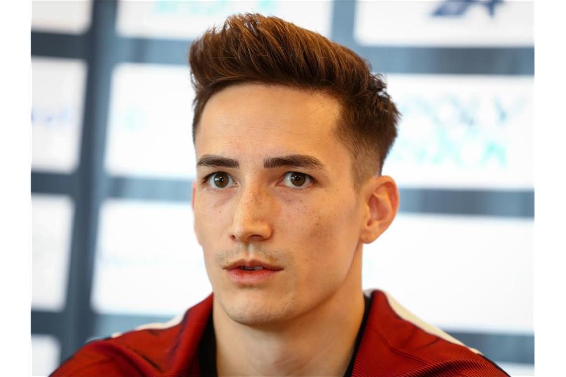 Der Deutsche Turner Marcel Nguyen sitzt bei einer Pressekonferenz. Foto: Christoph Schmidt/dpa/Archivbild