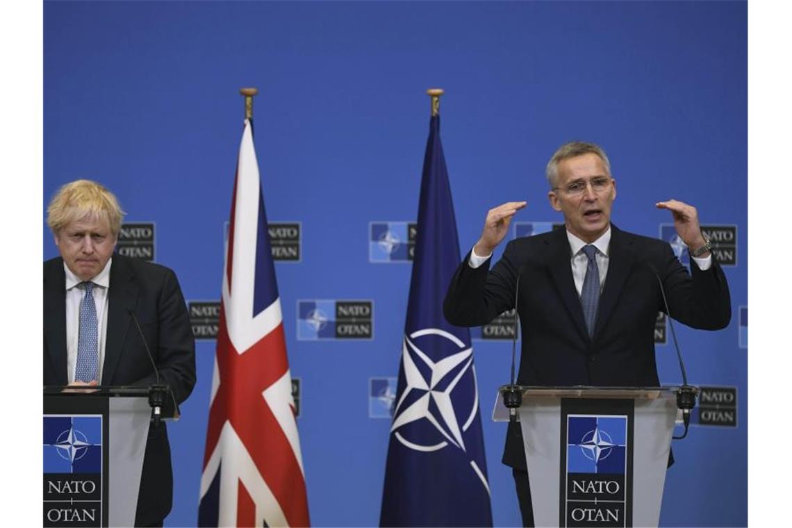 Der britische Premier Boris Johnson (l) und Nato-Generalsekretär Jens Stoltenberg in Brüssel. Foto: Daniel Leal/Pool AFP/AP/dpa