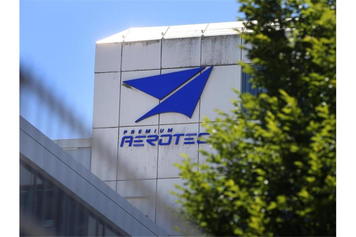 Das Logo der Airbus-Tochter Premium Aerotec am Hauptsitz des Unternehmens. Foto: Karl-Josef Hildenbrand/dpa