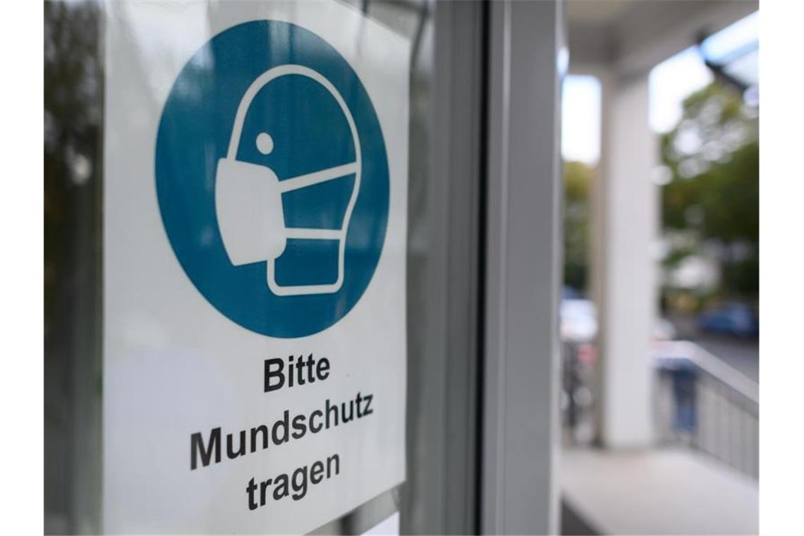 Ein Schild "Bitte Mundschutz tragen" ist an einer Tür angebracht. Foto: Robert Michael/dpa-Zentralbild/ZB/Symbolbild