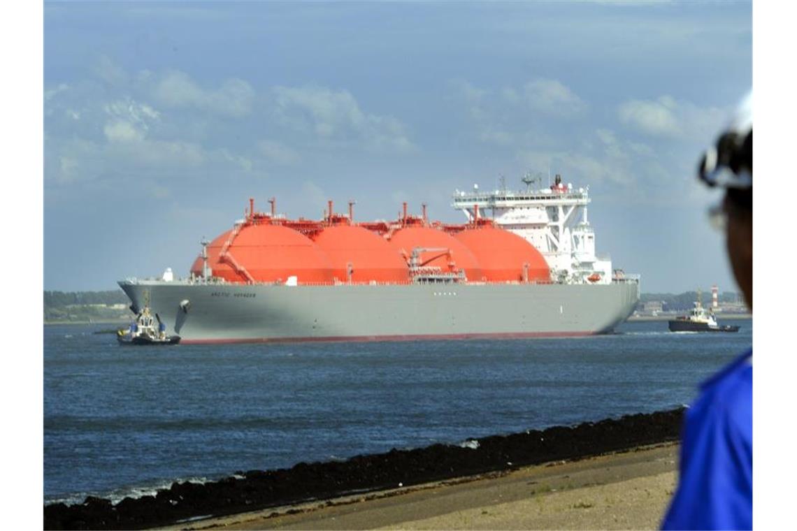 Ein Frachter für flüssiges Erdgas (LNG) liegt im Hafen von Rotterdam. Foto: Lex Van Lieshout/ANP/dpa