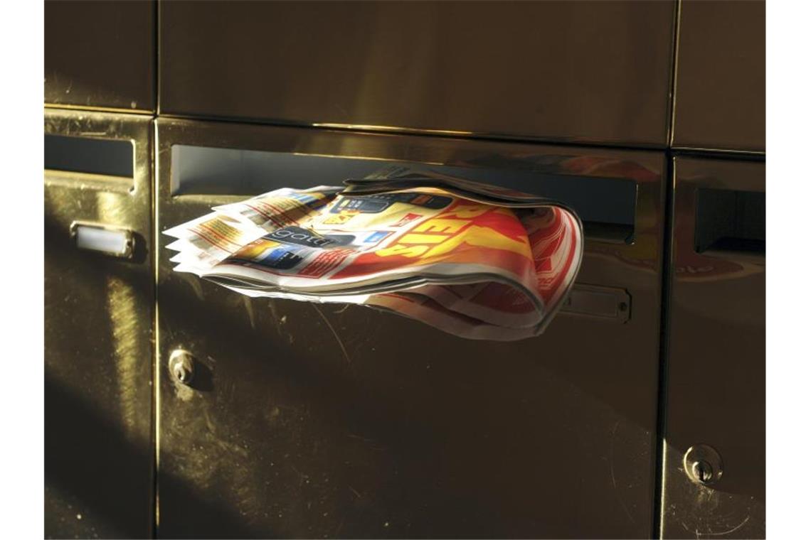 Wurfsendungen in einem Briefkasten. Foto: Jens Kalaene/dpa-Zentralbild/dpa