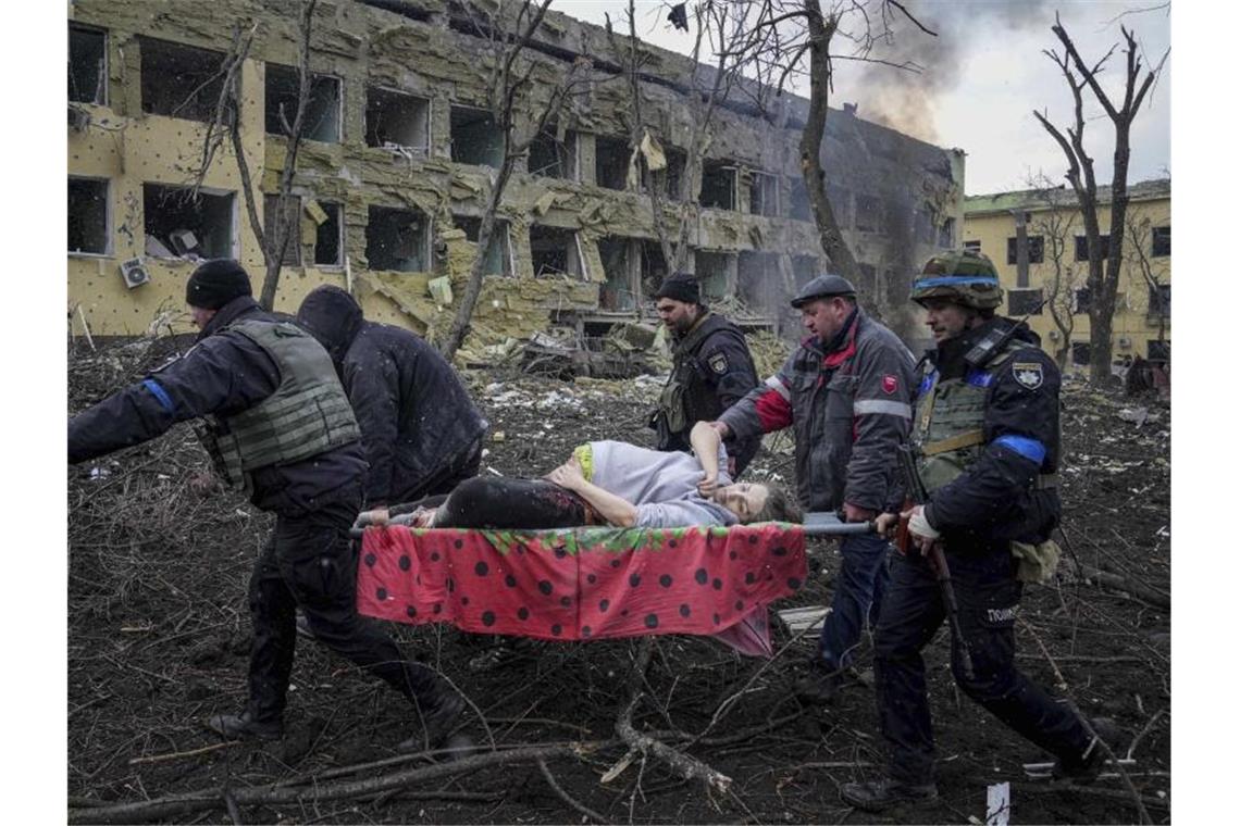 Beim Angriff auf eine Geburtsklinik in Mariupol wurden 17 Menschen verletzt - Berichte über drei Tote prüft die UN. Foto: Evgeniy Maloletka/AP/dpa