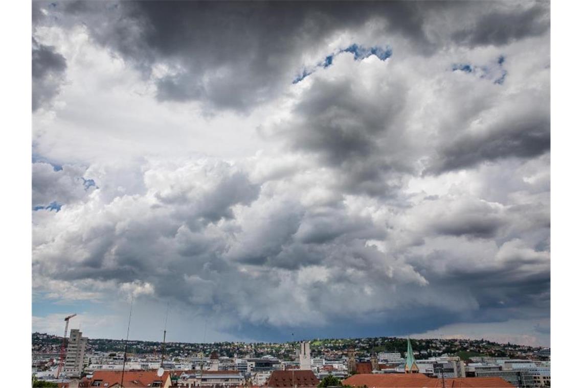 Dunkle Wolken ziehen über die Innenstadt von Stuttgart hinweg. Foto: Christoph Schmidt/dpa