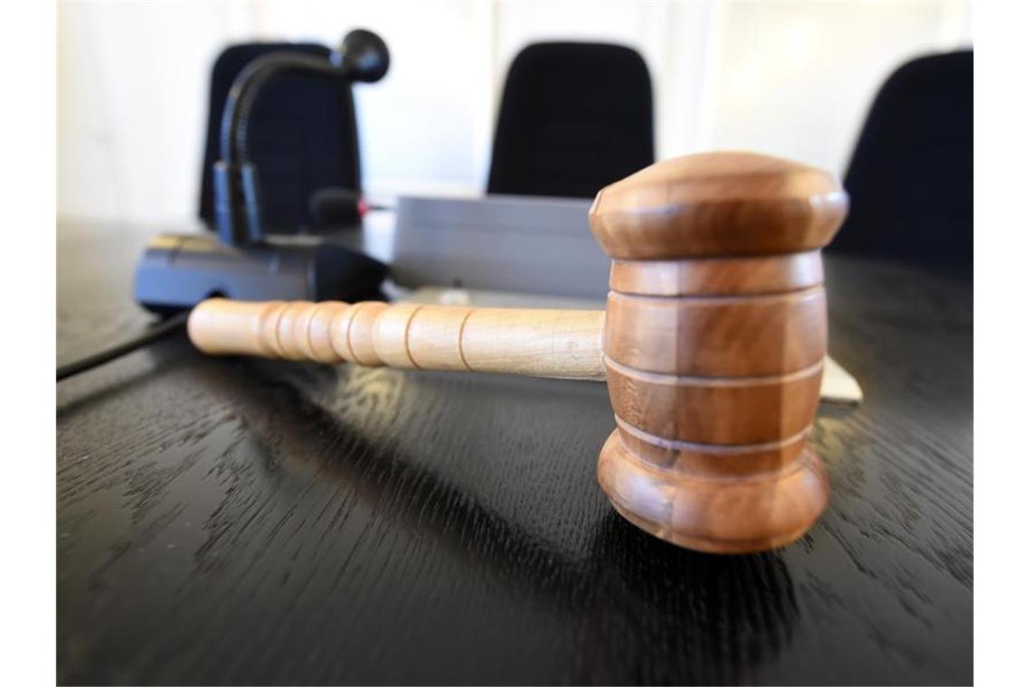 Auf der Richterbank liegt ein Richterhammer aus Holz. Foto: picture alliance / Uli Deck/dpa/Symbolbild