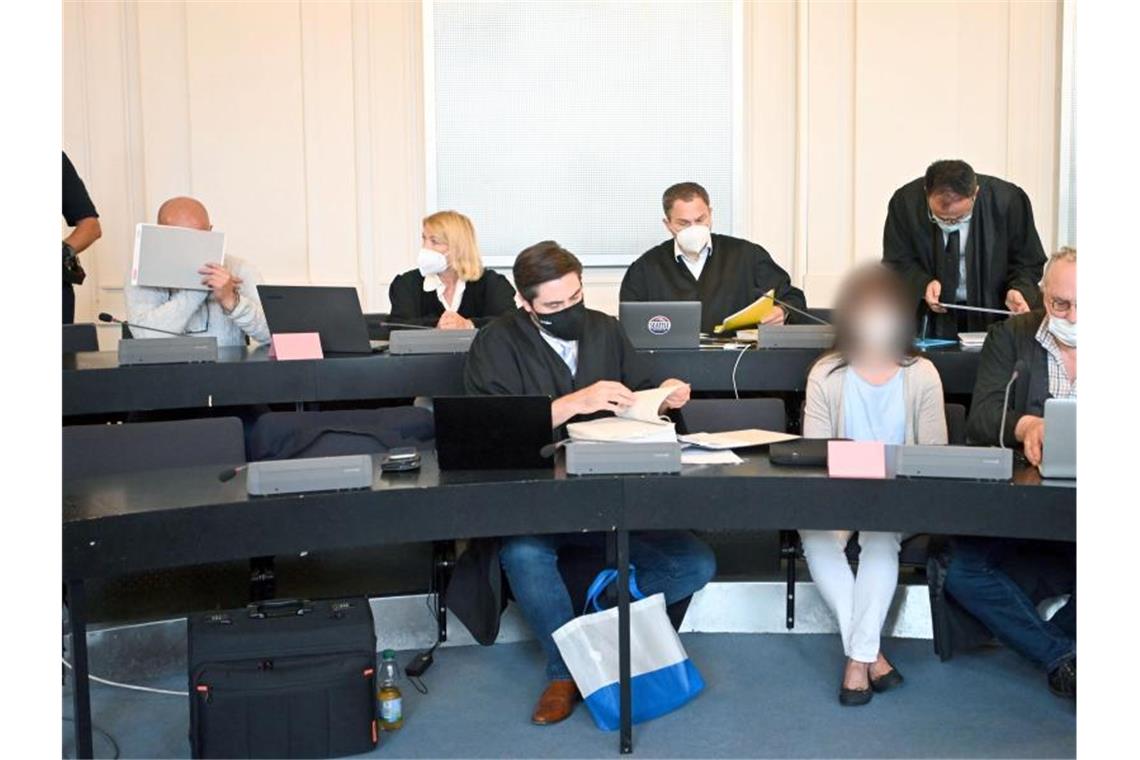 Der 43 Jahre alter Angeklagte (l) und die 49 Jahre alte Angeklagte (5.v.l. vorne) im Gerichtssaal. Foto: Uli Deck/dpa/Archiv