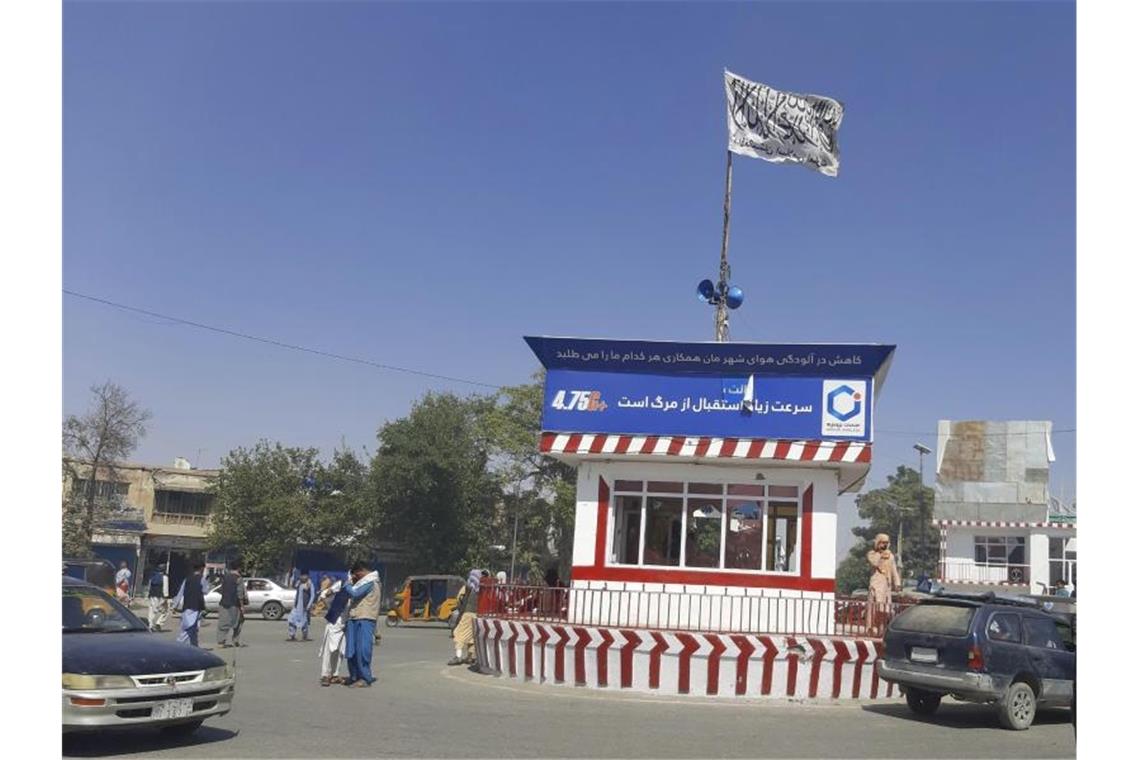 Eine Taliban-Flagge weht auf einem Platz in Kundus. Foto: Abdullah Sahil/AP/dpa