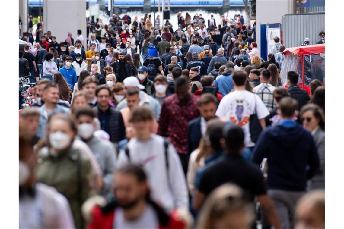 Menschen auf einer Fußgängerzone in München: Der Anteil der Corona-Varianten beträgt in Deutschland 2,1 Prozent. Foto: Sven Hoppe/dpa