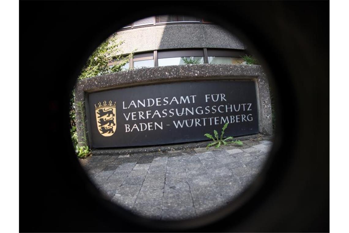Das Eingangsschild des baden-württembergischen Landesamts für Verfassungsschutz. Foto: Marijan Murat/dpa/Archivbild