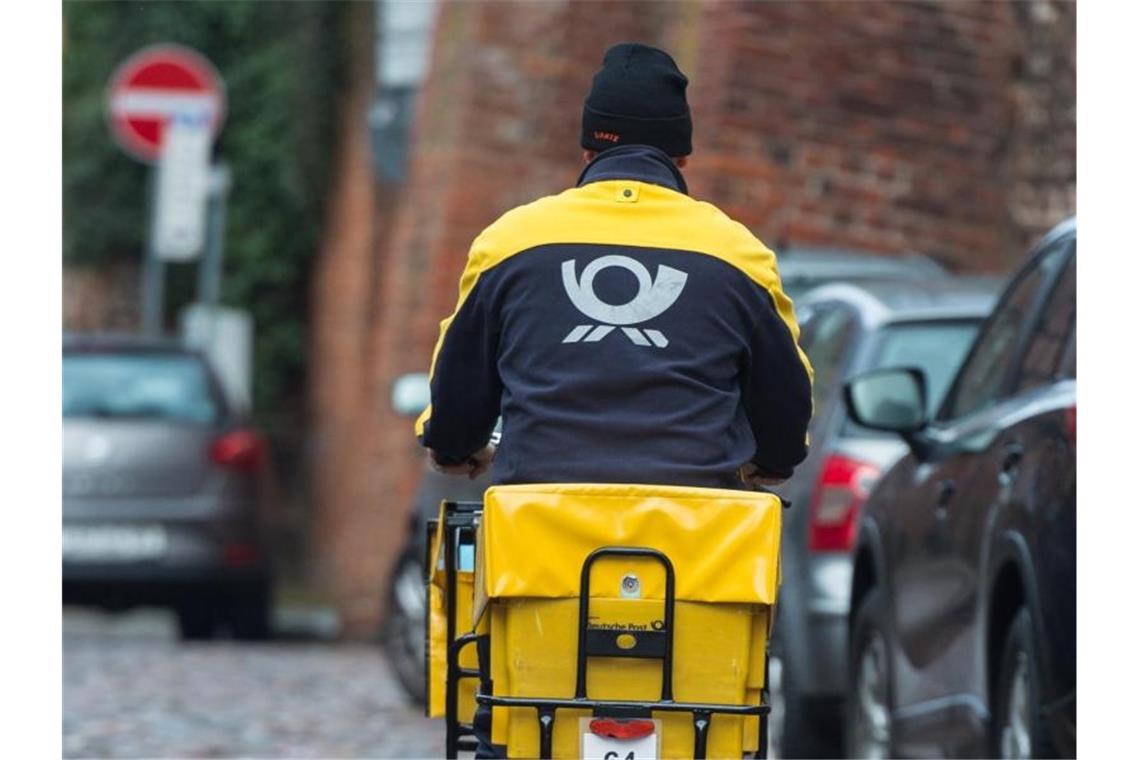 Ein Briefträger der Deutschen Post unterwegs in einer Innenstadt. Bald könnte die Zustellpflicht an Montagen wegfallen. Foto: Philipp Schulze/dpa