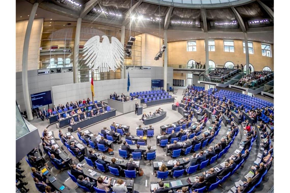 Die Übersicht zeigt den Plenarsaal während einer Sitzung des Deutschen Bundestages. Foto: Michael Kappeler/dpa