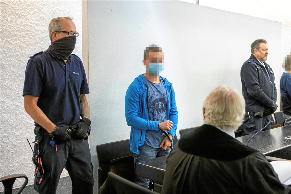 ASPACH/STUTTGART. Das Medieninteresse zum Auftakt des Prozesses um die Entführung einer Pflegefachkraft aus Aspach im Juni vergangenen Jahres ist groß. Wer sind die beiden Männer, die eine 47-jährige Frau gut eine Woche lang gefangen hielten, bedrohten und verletzten? Alle wollen einen Blick auf sie erhaschen. Zwei Kameramänner drängen mit ihrer Gerätschaft in den Saal, drei Fotografen suchen sich den besten Platz, während sich vier Arbeiter der schreibenden Zunft auf den Besuchersesseln niederlassen. Der Pressesprecher des Landgerichts ist auch zugegen, bittet um Einhaltung des Mindestabstands (was sich schwierig gestaltet), beantwortet hier und da hinter den Atemschutzmasken hervorgeflüsterte Fragen und durchmisst dabei mehrmals den Raum. Die Staatsanwältin und die Nebenklägerin sind bereits am Platz. Längst ist das akademische Viertel vergangen und alle Anwesenden in gespannter Erwartung. Die Justizangestellte und Protokollantin greift zum Telefon und beordert die Angeklagten in den Gerichtssaal. Eskortiert von drei Justizbeamten werden diese kurze Zeit später an ihre Plätze geführt. Die Kameras surren, die Fotoapparate klicken. Als sich die Justizbeamten an den Handschellen der Angeklagten zu schaffen machen, ist dies Zeichen dafür, dass die Richterriege im Anmarsch ist. Das Gerichtsverfahren kann beginnen.
