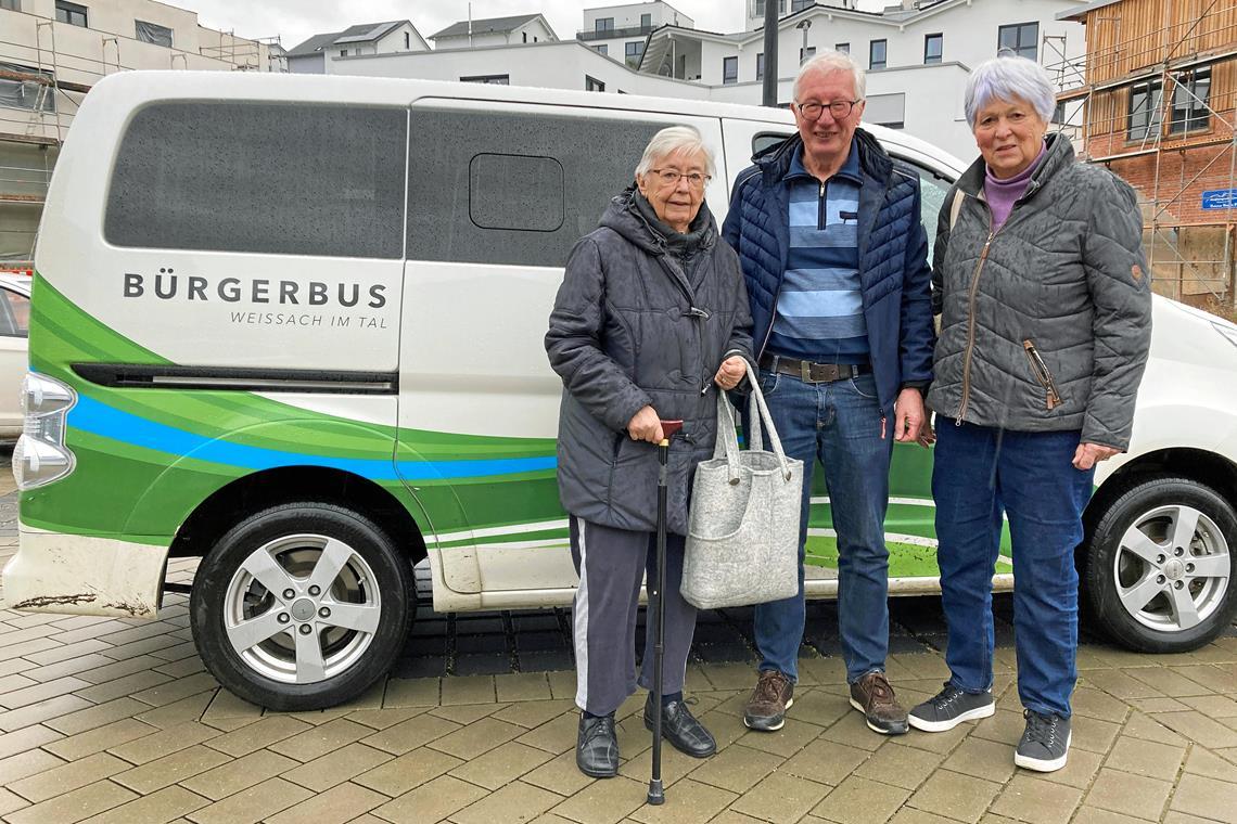 Seit 2019 fährt der Bürgerbus durch Weissach. Johann Raß ist einer der ehrenamtlichen Fahrer. Ursula Dierolf (links) und Margaretha Kleebaur nehmen das Angebot wahr. Foto: privat