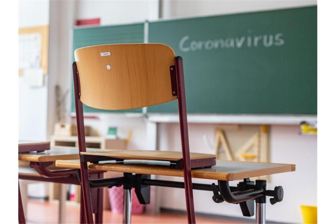 „Coronavirus“ steht auf einer Tafel in einem leeren Klassenzimmer. Foto: Armin Weigel/dpa/Symbolbild