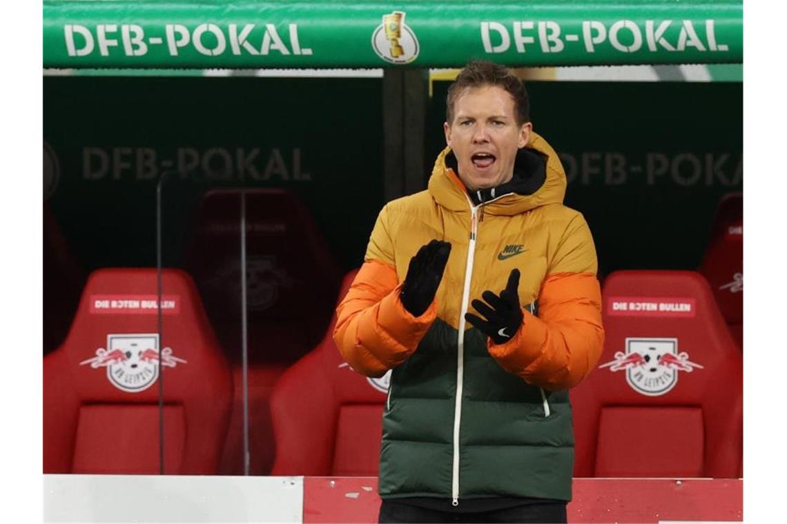Leipzigs Trainer Julian Nagelsmann gestikuliert an der Seitenlinie. Foto: Jan Woitas/dpa