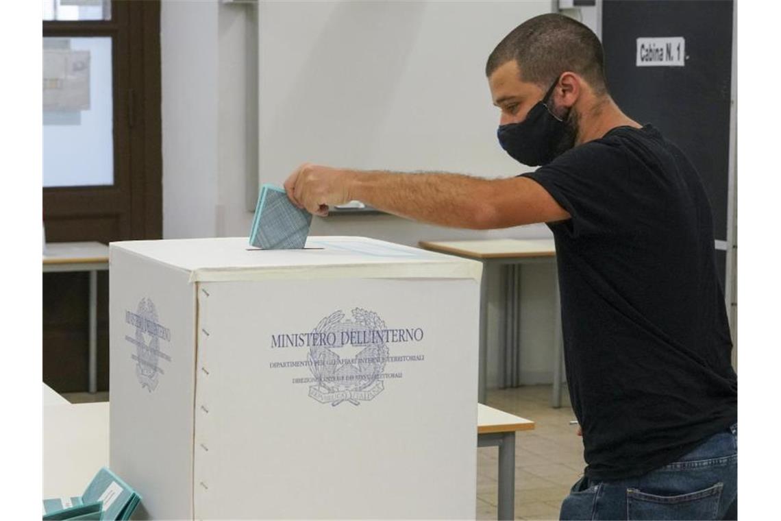 Bis zum Mittag gaben 13,1 Prozent der Wahlberechtigten ihre Stimme ab. Beim Referendum zur Verkleinerung des Parlaments waren es nach Angaben des Innenministeriums in Rom 12,25 Prozent. Die Wahllokale haben noch bis Montagnachmittag geöffnet. Die erste Abstimmung seit Beginn der Pandemie gilt als wichtiger Stimmungstest für die Regierung, der empfindliche Niederlagen drohen.